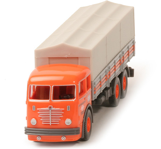 Mit Büssing-Logo über dem Kühlergrill. Die Fensterrahmen und Türgriffe sind hübsch silbern bedruckt. Die Farbangabe in Anführungszeichen ist in der Farbkarte von Holger Wanner nicht notiert. |