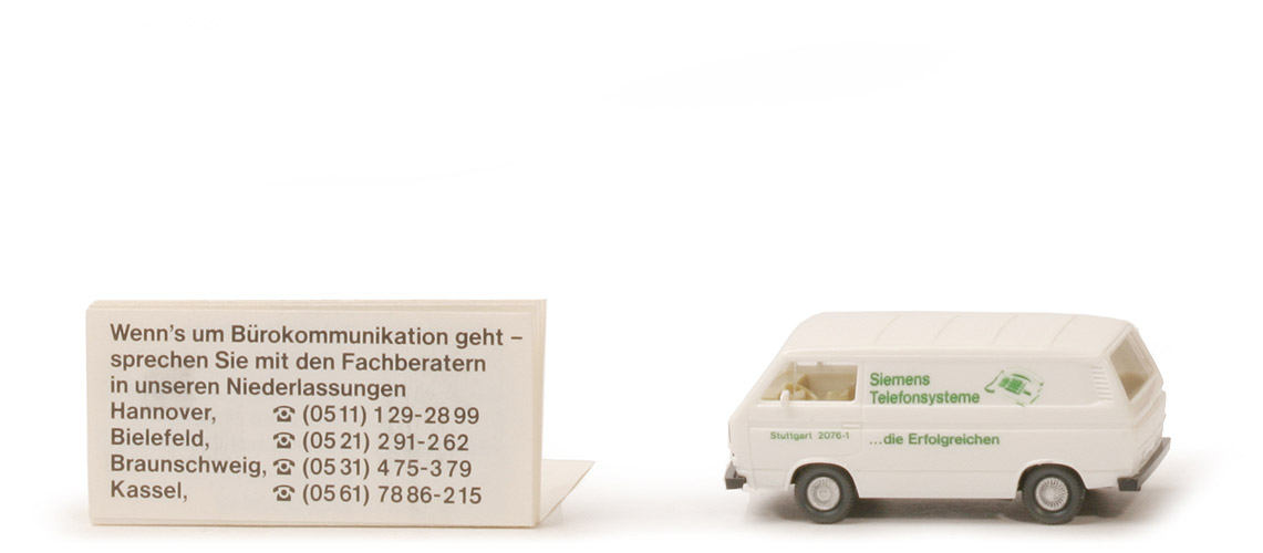 Werbemodell mit wunderbarer Leporello-Einlage mit 80er-Jahre-Telefonen. Türbeschriftung: "Stuttgart 2076-1". |