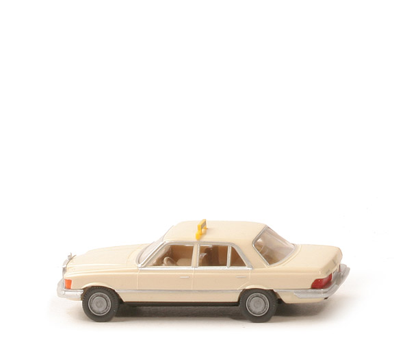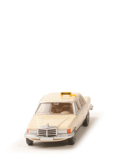 Lechtoys Edition 21 in Podestschachtel "Mercedes-Benz 450 SE (w116) Limousine Taxi". Sehr hübsch bedruckt: Fensterrahmen, Grill, Stoßstangen, Türgriffe, MB Stern, "450 SE" silbern, Grill schwarz hinterlegt, Blinker und Rückleuchten bedruckt. |