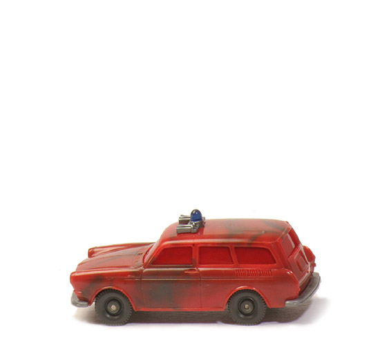 Schlierige Spritzlinge sind nicht für den Verkauf bestimmt gewesen. Solche Variationen entstehen beim Farbwechsel einer Form. Sehr ungewöhnlich auch: mit rot durchgefärbter Verglasung. Dieses Modell stammt aus dem Peltzer-Nachlass.