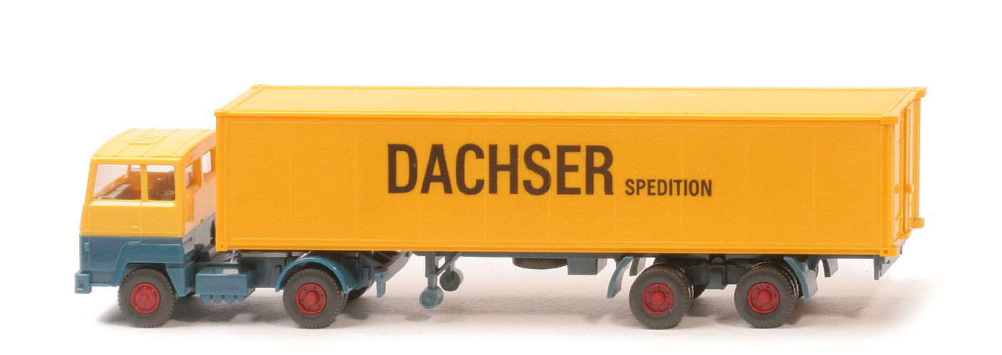 Azurblaue Kabinenteile gab es nicht in der Serie. Nicht der übliche Kofferaufbau mit Seitentür, sondern Glattwandcontainer.