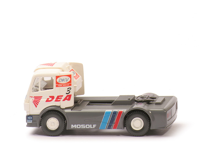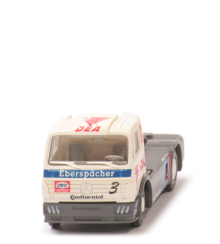 Dies ist der DEA-Truck als Werbemodell in MB-Einzelverpackung. Markant: Startnummer 3, Grill in grober Struktur mit integriertem MB-Stern.