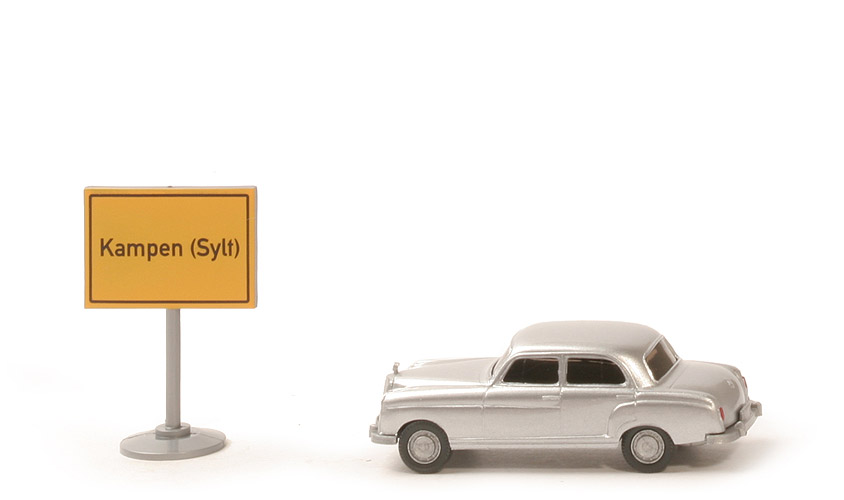 Collect & Invest (58): "Ein Mercedes-Benz 220 Ponton, der Luxus-Wagen der 50er Jahre, unterwegs auf Sylt". Mit hübschem Verkehrsschild.