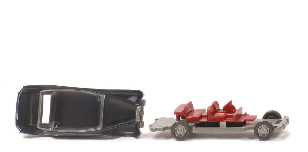 Präzise die Vorserie B aus dem GK. Das Chassis hat keine Bodenprägung. Die Inneneinrichtung ist noch auf 2 PKW-Rädern verklebt. Keine Haltestifte für die Karosserie.