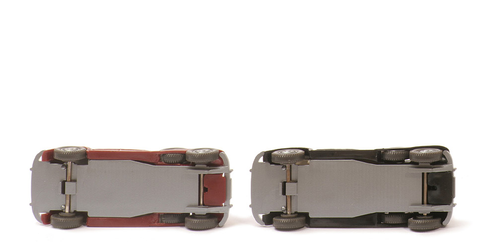 Präzise die Vorserie C aus dem GK. Das Chassis ist von unten ohne Gravur. Hinten kein Nummernschild auf der Stoßstange. Die Stoßstangen-Hörner graziler als in der Serie.