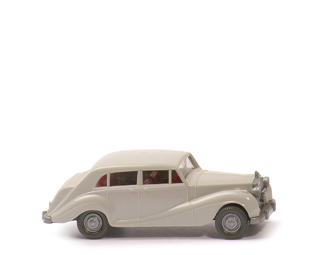Farbe | silbergrau | Grill | silbern eingesetzt | Inneneinrichtung | ca. weinrot | Lenkrad | integriert | Bemalung Rückleuchten | ohne | Chassisfarbe | silbern | Bodenprägung | Rolls-Royce 1951 WIKING Berlin-W | Räder | 9 mm | Radkappen | silbern eingesetzt |