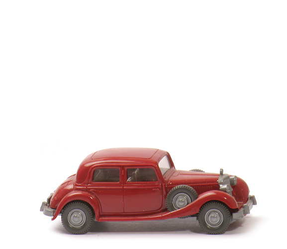 Farbe | rubinrot | Grill | silbern eingesetzt | Struktur Grill | mit | Mercedes Stern | mit Innengravur | Reserveräder | auf vorderen Kotflügeln | Inneneinrichtung | goldmetallic | Lenkrad | integriert | Bemalung Rückleuchten | ohne | Chassisfarbe | silbern | Bodenprägung | Mercedes 260 D, WIKING, Berlin-W | Räder | 9 mm | Radkappen | silbern eingesetzt | Rolldach | farblich nicht abgesetzt |