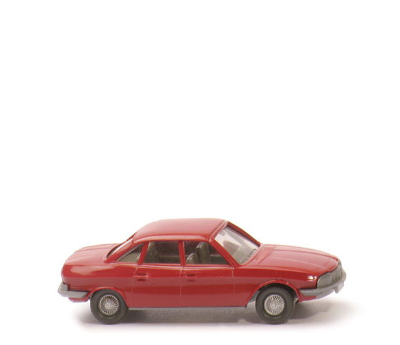 Farbe Karosserie | rubinrot | Grill | Teil des Chassis | Verglasung | klar | Inneneinrichtung | ca. graubeige | Lenkrad | integriert | Chassis | silbern | Bodenprägung | WIKING Germany NSU Ro 80 | Bemalung | völlig ohne | Räder | Standard-Riffelkappe | Bemalung Radkappen | silbern |