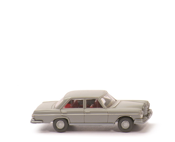 Farbe Karosserie | platingrau | Scheinwerfer | klar, eingeklebt | Fläche hinter Scheinwerfern | nicht bemalt | Grill | silbern, eingesetzt, mit Stern | Inneneinrichtung | hellbraunrot | Lenkrad | separat eingesetzt, ca. perlweiß | Chassis Farbe | silbern | Bodenprägung | Mercedes 280 S, WIKING Germany, 15 s | Bemalung Rückleuchten | ohne | Räder | Riffelkappe gesilbert |