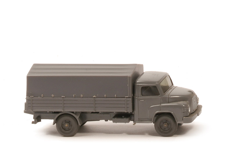Modellversion | Typ 3 - Chassis neu, Pritsche neu | Farbe Kabine | basaltgrau | Verglasung | getönt | Grill | silbern eingesetzt | Bemalung | nur Scheinwerfer | Inneneinrichtung | glatte Bank | Haltenasen Kabine | mit | Chassis Art | Typ 3 | Bodenprägung | WM, GERMANY, 41 | Bereich Kardan hinten | geschlossen | Rücklichtstange | mit | Pritschenabstützung | Stege | Arretierung Haltenasen | mit | Chassisfarbe | basaltgrau | Pritsche Art | fein strukturiert | Pritschenseiten | gerade, feine Struktur | Pritschenunterseite | 6 schmale Quertraversen | Pritsche Farbe | basaltgrau | Pritscheneinlage | silbern | Bemalung Rückleuchten | rot | Plane | basaltgrau | Räder | 6-Loch |