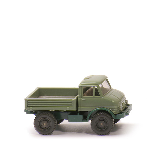 Farbe Kabine | resedagrün | Verglasung | klar | Inneneinrichtung | ca. basaltgrau | Lenkrad | ohne | Chassis Farbe | patinagrün | Bodenprägung | 37 g, Wiking, Germany | Kardanelement Farbe | patinagrün | Reserverad | über Chassis | Pritsche | resedagrün | Pritscheneinlage Typ | 6 Längsstreifen und trapezförmige Gravur | Pritscheneinlage Farbe | silbern | Bemalung | nur Scheinwerfer | Räder | 11 mm, 6-Loch | Farbe Räder | anthrazit |