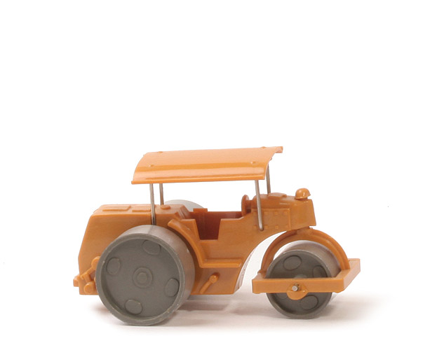 Farbe Karosserie | senfgelb | Halterung für Dach | mit | Dach | senfgelb | Herstellerkennzeichnung | WM im Kreis auf Dachunterseite | Herkunftskennung | ohne | vordere Walzenhalterung Farbe | senfgelb | hier Ausführung | Achsführung verstärkt | hier Befestigung | Arretierung von oben mit kuppelförmigem Nippel | Lenkrad Farbe | senfgelb | Lenkrad Ausführung | Vollmaterial | Fahrer | ohne | Walzen Grundfarbe | ca. betongrau | Silberung der Laufflächen | mit |
