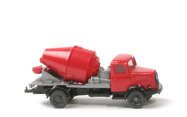 Farbe Kabine | rot | Verglasung | getönt | Grill | schwarz eingesetzt | Bedruckung | Henschel-Emblem vorne in silber | Chassis Art | ähnlich 3. Version: geschl., m. GERMANY | Blinker | mit | Chassis Bodenprägung | neues WIKING-Logo und Germany | Chassis Farbe | schwarz | Zughaken | Mikro-Zughaken | Aufbau | silbern | Trommel | rot | Schütte | rot | Bemalung Rückleuchten Aufbau | ohne | Räder | 11mm, 6-Loch |