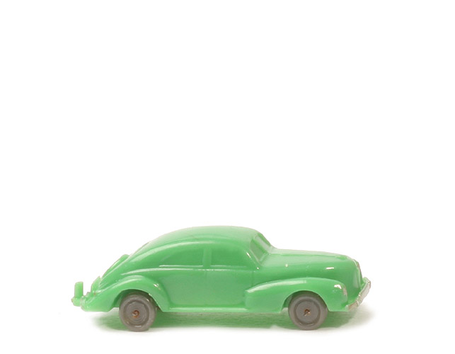 Achsen | Drahtachser | Typ | Haube gerundet ("spitz") | Farbe Karosserie | froschgrün | Frontscheibe | geteilt | Kühlergrill | ein senkrechter Steg | hintere Stoßstange | geteilt, integrierter Zughaken | Zughaken | Zughaken integriert | Bodenprägung | WM Germany | Bemalung Scheinwerfer | silbern | Bemalung Kennzeichen vorne | silbern | Bemalung Stoßstange vorne | silbern | Bemalung Rückleuchten | rot | Bemalung Kennzeichen hinten | ohne | Bemalung Stoßstange hinten | silbern | Räder Typ | Nabe flach | Räder Farbe | staubgrau |