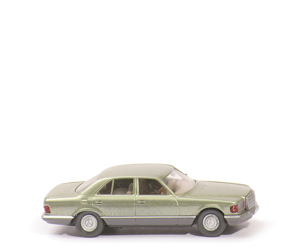 Farbe Karosserie oben | lindgrün metallic Lack | Farbe Schürze | basaltgrau | Stoßstangen, umlaufende Leiste | silbern | Grill | silbern | Verglasung | klar, mit Innenspiegel | Scheinwerfer vorne | klar transparent | Blinker vorne | rot transparent | Rückleuchten | rot transparent | Inneneinrichtung | graubeige, integriertes Lkr | Chassis | anthrazit | Bodenprägung | Mercedes/500SE/WIKING/Berlin-W | Räder Art | MB Radkappen | Radkappen | gesilbert |