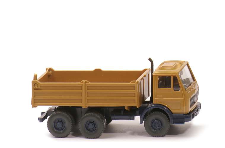 Die erste Produktion des 2636 Pritschenkippers lief von 1976 bis 1982. Nach eine Produktionspause wurde das Modell wie hier abgebildet von 1989 bis 1991 erneut produziert. Es ist fast identisch mit den frühen Modellen. Nur die Spiegelaufnahmen sind verschwunden und es gibt nun den stehenden Auspuff. |
