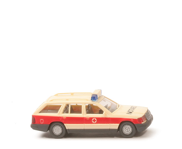 Farbe Karosserie | creme | Blaulichtbalken | creme, Warnleuchten blau transparent | Scheibenwischer | Teil der Karosserie | Außenspiegel | beidseits | Verglasung | klar, mit Innenspiegel | Inneneinrichtung | silbern, integriertes Lkr | Grill | silbern | Scheinwerfer vorne | transparent | Blinker vorne | rot transparent | Rückleuchten | rot transparent | Stoßstangen, Chassis | anthrazit | Bodenprägung | neues WIKING-Logo/Mercedes 230TE/Berlin-W/Germany | Bedruckung Seiten, Heck | Streifen rot, Rotkreuz auf Türen als Negativdruck | Bedruckung Haube | "Notarzt" schwarz | Räder Art | MB Radkappen | Felgen | silbern |