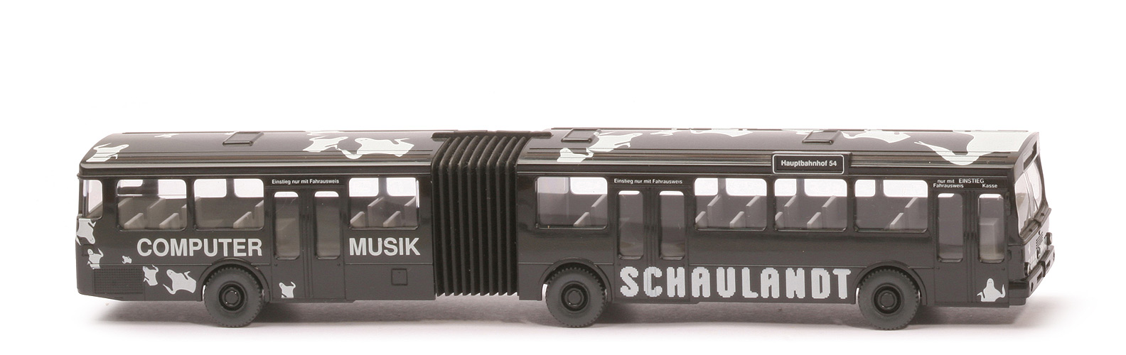 Farbe Karosserie | schwarz | Bemalung vorne | Scheinwerfer silbern | Verglasung | klar | Gelenkbereich | schwarzer Weichkunststoff | Sitze | lichtgrau | Fahrer | ohne | Lenkrad | anthrazit | | Bemalung Heck | Chassis Farbe | schwarz | Chassis Typ | mit Trapez | Bodenprägung | WIKING, Berlin-W | Räder | 12mm, Profil grob | Radkappen | schwarz | Zielangaben | Hauptbahnhof 54 (DRUCK!) | Beschriftung | Schaulandt (... s. Foto) | Beschriftung Art | Druck weiß |