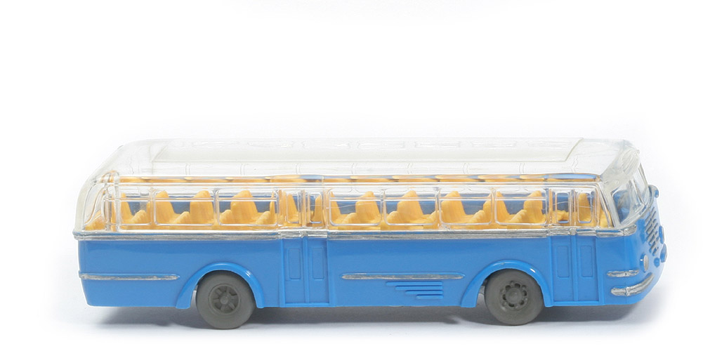 | | Karosserie | | Typ Karosserie | Typ 2 | | Farbe | himmelblau | | Scheinwerfer | konkav | | Grill | neu | | unterer Türabschluss | bündig mit Karosserie | | angedeutete Fenster in Türen | eckig | | Heck | Version 4 | | Heckbeschriftung BÜSSING | fett | | Rückleuchten | mit, 3er Kaskade | | Nummernschild hinten | mit | | Bodenprägung | WM im Kreis, klein | | Chassishalterungen | mit (!) | | | Dach | | Typ Dach | glatt, ohne Lüfter | | Fenster | gerundet | | | Inneneinrichtung | | Typ Inneneinrichtung | Sitze grob | | Farbe | gelb | | Lenkrad | an Karosserie | | Lenkrad Farbe | ca. basaltgrau | | | Chassis | | Bodengruppe | Typ 2 | | Chassis Farbe | silber | | | Räder | | Typ | Trilex | | Farbe | ca. basaltgrau |