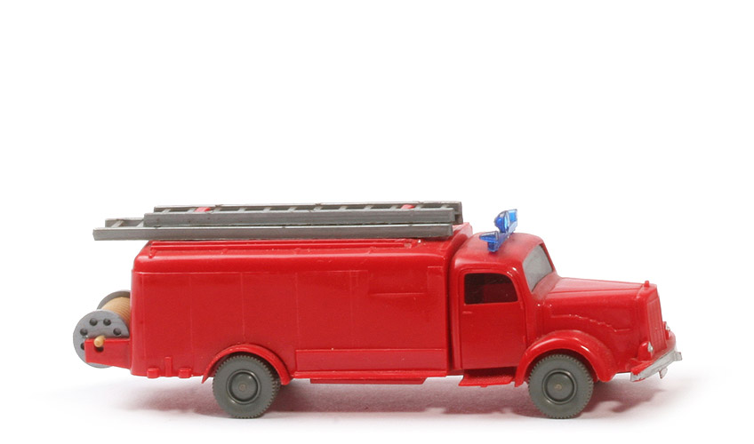 Farbe Kabine | rot | Version Kabine | mit Schlitz hinter Nrn-Schild | Blinker | ohne | Verglasung | getönt | Dach | glatt mit Blaulichtleiste | Bemalung | Scheinwerfer, Nummernschild | Bemalung Stoßstange | mit | Reserverad | ohne | Version Chassis | Version 2 | Chassis Farbe | rot | Achshalterungen | geschlossen | Bodenprägung | WM (ohne Kreis) | Aufbau Farbe | rot | Aufbau Variante | Vorderwand dünn | Leitern | silbern | Schlauchhaspel Typ | alt | Schlauchhaspel Seiten | silber | Schlauch | beige | Räder | 10mm, neuere Ausführung |