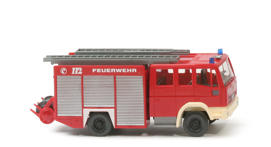 Kabine | rot | Dach | 2 Warnlichter blautransparent ohne Sockel, Fanfaren silber | Frontdruck | "Feuerwehr" weiß | Grill | schwarz hinterlegt, "Iveco Magirus" silbern | Verglasung | klar | Inneneinrichtung | anthrazit, Lkr. separiert | Stoßstange, vorderer Kotflügel | weiß | Scheinwerfer | gesilbert | Aufbau | rot | Rollläden | gesilbert | Kotflügel hinten | weiß bedruckt | weiterer Druck Aufbau | oben Telefonsymbol, "112", "Feuerwehr" | Dach Aufbau | silbern | Leitern | silbern | Bodengruppe Aufbau | schwarz | Schlauchrolle | staubgrau | Schauchhaspeln Seite | rot | Chassis | schwarz | Bodenprägung Chassis | neues WIKING-Logo | Reserverad | ohne | Räder | 12 mm, Felgen eingesetzt | Felgen | 8-Loch, schwarz |