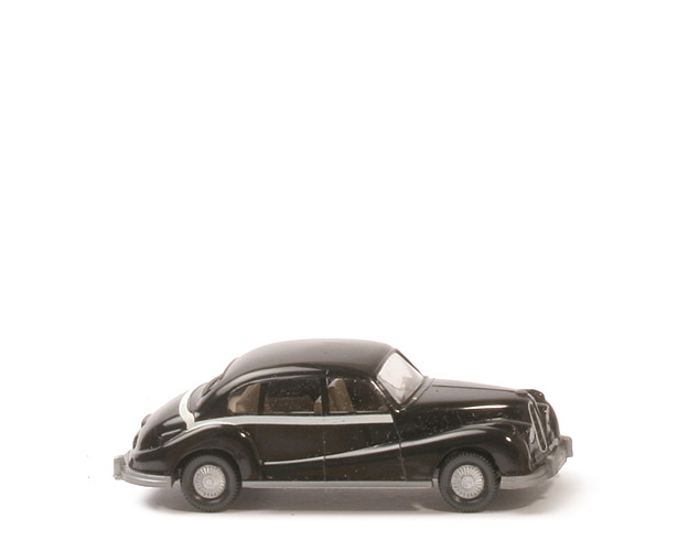 Karosserie | schwarz | Verglasung | klar | Inneneinrichtung | ca. hellelfenbein | Lenkrad | integriert | Farbe Chassis | silbern | Bodenprägung | BMW 501, WIKING, Berlin-W | Bemalung Scheinwerfer | silber | Bemalung Grill | Umrandung silbern | Bemalung Rückleuchten | ohne | weitere Bedruckung | weißer Streifen Seiten und hinten | Räder | Riffelkappe, Felge gesilbert |
