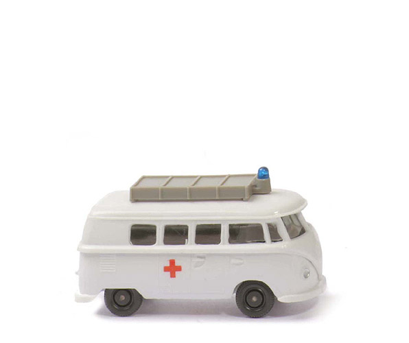 Farbe Karosserie oben | weiß | Farbe Karosserie unten | weiß | Heckscheibe | klein | Chassis | Teil des Karosserieunterteils | Chassis Version | Typ B Nest 1 | Bodenprägung | Made in Germany, WM | Rückleuchten | stark erhaben | Mittelholm | oben geschwungen | Verglasung | Typ 3, leicht getönt, eine Bohrung | Inneneinrichtung | ohne | Dachaufbau | ca. kieselgrau | Blaulicht | am Dachaufbau | Rotes Kreuz | Druck | Bemalung Scheinwerfer | silbern | Bemalung VW-Emblem | ohne | Bemalung Stoßstangen | ohne | Bemalung Kennzeichen hinten | ohne | Bemalung Rückleuchten | ohne | Räder | 8 mm, anthrazit, Nabe flach |