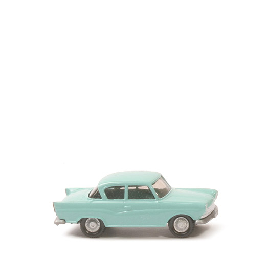 Farbe | helles türkis Klarlack | Verglasung | fast klar | Inneneinrichtung | ohne | Chassisfarbe | silbern | Bodenprägung | neues WIKING-Logo, Germany | Bedruckung Scheinwerfer | silber | Bedruckung Grill | silber | Bedruckung Rückleuchten | rot | Bedruckung Kennzeichen hinten | ohne | Räder Typ | 8 mm, anthrazit, Riffelkappe | Felgen | gesilbert |