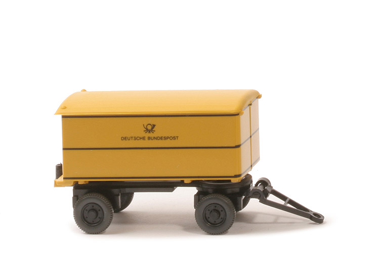 Koffer Farbe | ca. hellgelb | Koffer | Typ 5 -Neuauflagen | Rückleuchten | neu, nicht bemalt | Positionslichter vorn | mit | Türaufnahmen | unten geschlossen | Türen Farbe | ca. hellgelb | Türen Typ | Griff als Lasche, mit Rand | Dach | glatt, mit Rand und Positionsleuchten | Dach Farbe | ca. hellgelb | Nummerschild | ohne | Beschriftung | Posthorn, "Deutsche Bundespost", 3 umlaufende Streifen | Beschriftung Art | Druck schwarz | Chassis Farbe | schwarz | Zughaken | ins Chassis integriert | Achshalterungen | offen | Drehschemel | eingesteckt | Bodenprägung Chassis | neues WIKING-Logo, Germany | Bodenprägung Drehschemel | ohne | Deichsel | Kunststoff | Räder Typ | 11 mm, 2-teilig | Felgen | schwarz |