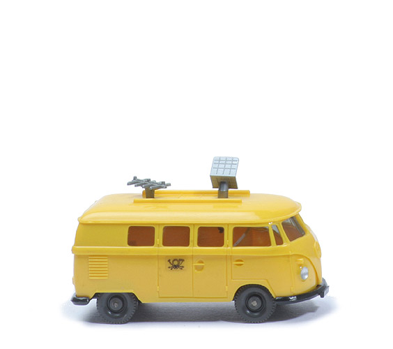 Farbe Karosserie oben | gelb | Farbe Karosserie unten | gelb | Heckscheibe | groß | Chassis Ausführung | separates Bauteil | Dach | mit Streben | Antennen | silbern, drehbar eingesteckt | Verglasung | getönt | Inneneinrichtung | ohne | Chassis Farbe | schwarz | Bodenprägung | Wiking Germany | Beschriftung | kleines Posthorn ca. 3 mm | Beschriftung Art | Folie | Bemalung vorne | Scheinwerfer silbern | Bemalung hinten | ohne | Räder | anthrazit, 8 mm |