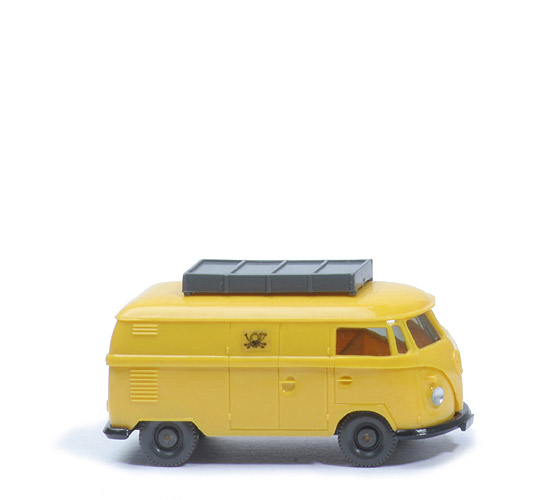 Farbe Karosserie oben | gelb | Farbe Karosserie unten | gelb | Heckscheibe | groß | Chassis Ausführung | separates Bauteil | Dach | mit Streben | Dachaufbau | basaltgrau | Verglasung | getönt | Inneneinrichtung | ohne | Chassis Farbe | schwarz | Bodenprägung | Wiking Germany | Beschriftung | kleines Posthorn ca. 3,5 mm | Beschriftung Art | Folie | Bemalung vorne | Scheinwerfer silbern | Bemalung hinten | ohne | Räder | anthrazit, 8 mm |