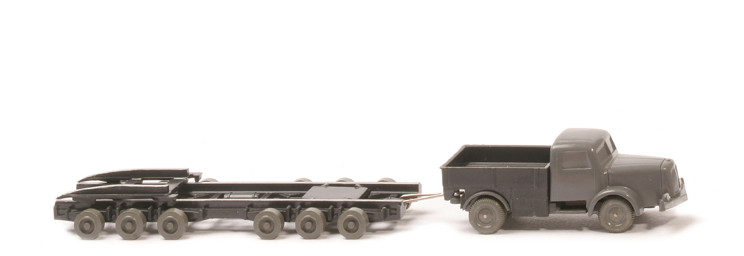 | Achsen | Rollachser | | | Zugmaschine | | Farbe Kabine | basaltgrau | | Farbe Chassis | basaltgrau | | Bemalung | Scheinwerfer, Stoßstange | | Sattelpfanne | ohne | | Chassis | Version 1a | | Achshalterungen | geschlossen | | Bodenprägung | WM im Kreis | | Reserverad | ohne | | Pritsche | anthrazit | | Ladegut | ohne (nur ohne original) | | Räder | 10 mm, mit Profil, staubgrau | | | Anhänger Culemeyer | | Typ | Gleiskante hoch | | Bodenprägung | WMiK | | Farbe | anthrazit | | Bremsplatte | anthrazit, glatt, Höhe 1,4mm | | Rampe | anthrazit | | Bemalung | Gleise silbern | | Deichsel | Metall | | Räder | Walzenräder 7,8mm o. Profil | | Farbe Räder | staubgrau |