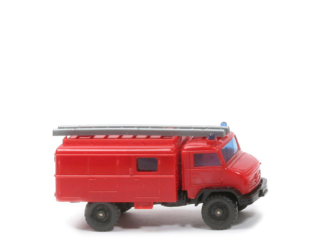Farbe Kabine | rot | Version Kabine | geschlossen | Dach | mit zwei Warnlichtaufnahmen | Blaulicht | zwei, Teil der Verglasung | Verglasung | blau-transparent | Bemalung Kabine | ohne | Chassis Farbe | schwarz | eingesetzte Kardaneinheit | anthrazit | Chassis Typ | vor Hinterachse geschlossen | Bodenprägung | WM und GERMANY | Zughaken | entfernt | Tanks, Luftbehälter | unten geschlossen | Reserverad | ohne | Aufbau Farbe | rot, verklebt | Leiter | gesteckt, silbern | weitere Bemalung | keine | Räder | 10mm, grobstollig | Farbe Räder | anthrazit |