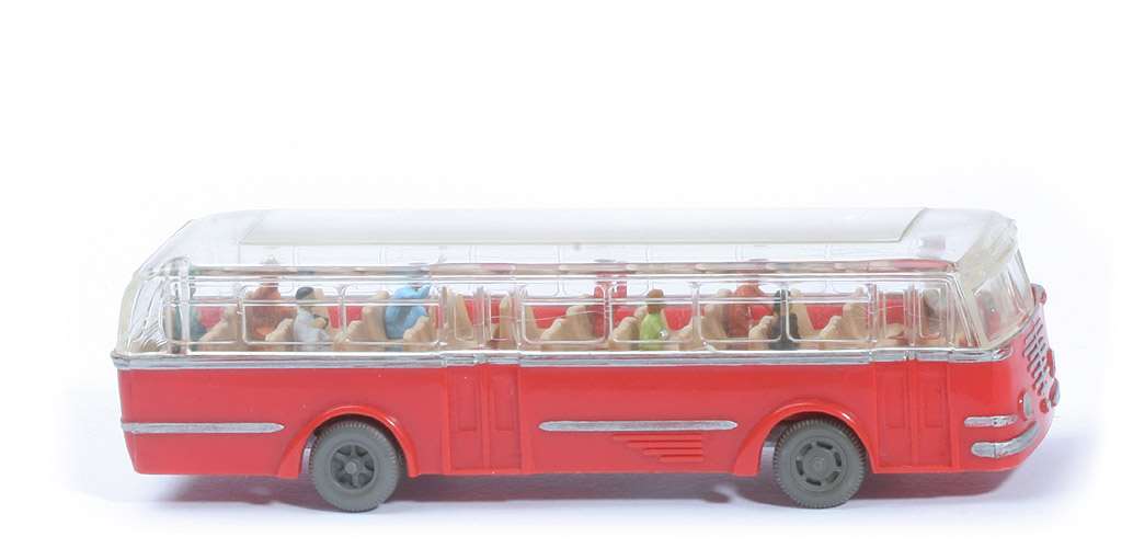 | | Karosserie | | Typ Karosserie | Typ 2 | | Farbe | orangerot | | Scheinwerfer | konkav | | Grill | neu | | unterer Türabschluss | bündig mit Karosserie | | angedeutete Fenster in Türen | eckig | | Heck | Version 5 | | Heckbeschriftung BÜSSING | ohne | | Rückleuchten | mit, 3er Kaskade | | Nummernschild hinten | mit | | Bodenprägung | WM im Kreis, klein | | Chassishalterungen | ohne | | | Dach | | Typ Dach | glatt | | Fenster | gerundet | | | Inneneinrichtung | | Typ Inneneinrichtung | Sitze fein | | Farbe | beige | | Lenkrad | 2-speichig, an Karosserie | | Lenkrad Farbe | ca. anthrazit | | Fahrer | hellelfenbein | | | Chassis | | Bodengruppe | Typ 3 | | Chassis Farbe | silber | | | Räder | | Typ | Trilex mit Profil | | Farbe | ca. staubgrau |