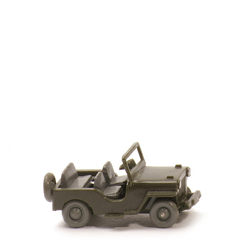 Achsen | Rollachser | Farbe Karosserie | olivgrün | Lenkrad | Teil der Karosserie | Frontscheibe | als Rahmen separat eingeklebt | Fahrer | immer ohne | Sitze Ausführung | als ein Bauteil eingeklebt | Sitze Farbe | basaltgrau | Chassis Farbe | olivgrün | Bodenprägung | WM im Kreis | Zughaken | immer ohne | Bemalung Scheinwerfer | silber | Bemalung Rückleuchten | rot | Reserverad | angeklebt | Räder Typ | ohne Profil | Räder Farbe | ca. staubgrau |