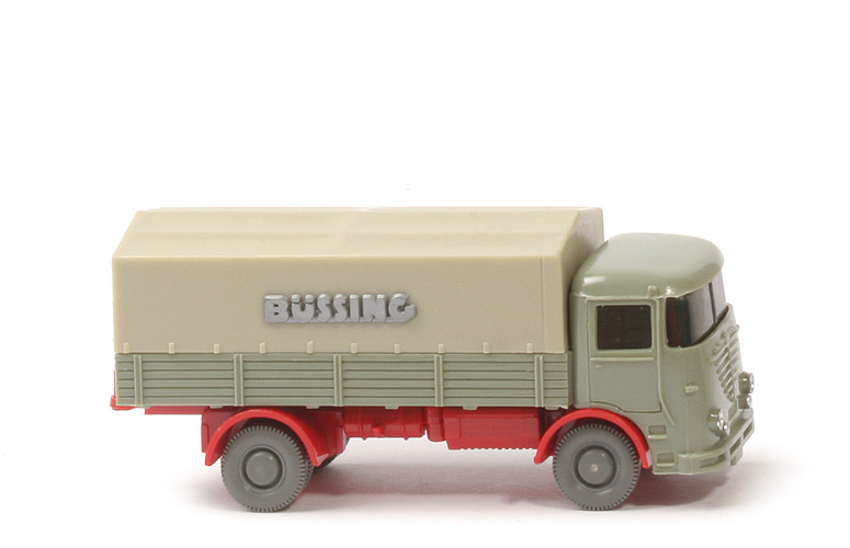 Mit BÜSSING-Schriftzug in silbern auf der Plane und Werbeeinlage. Sonst wie CS 616/4BB und GK 474/5e.