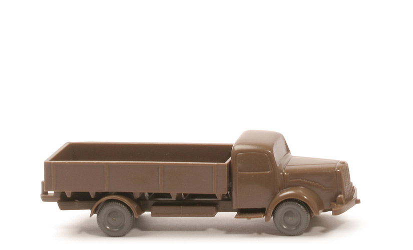 Achsen | Rollachser | Farbe Kabine u. Chassis | blassbraun | Verstärkung Trittbretter | mit | Bemalung Kabine | ohne | Version Chassis | Version 1b | Chassis Farbe | blassbraun | Bodenprägung | WM im Kreis | Pritsche | Seiten glatt | Farbe Pritsche | blassbraun | Zughaken | nach oben | Zapfen | Flachzapfen | Kennzeichen | unbemalt | Befestigung Pritsche | geklebt | Räder | 10mm, mit Profil |