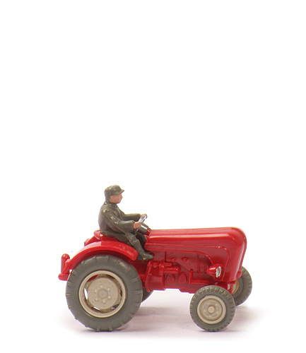 Aufbau | rot | Bodenprägung unter Hinterachse | spiegelverkehrte 1 | Verstärkung neben Fahrersitz | ohne | Vorderachsportal | dünn | Scheinwerfer | klein, silbern bemalt | Zughaken | stark | Lenkrad | silbern, 4 Speichen | Fahrer | ca. staubgrau | Räder | grau | Felgen vorne | 5-Loch | Felgen hinten | durchbrochen, innen glatt | Felgenfarbe | hellelfenbein |