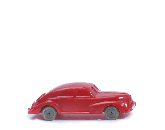 Achsen | Drahtachser | Typ | Haube gerundet ("spitz") | Farbe Karosserie | dunkles rot | Frontscheibe | geteilt | Kühlergrill | ein senkrechter Steg | hintere Stoßstange | durchgehend | Zughaken | ohne | Bodenprägung | WM Germany | Bemalung Scheinwerfer | weiß | Bemalung Kennzeichen vorne | weiß | Bemalung Stoßstange vorne | ohne | Bemalung Rückleuchten | hellorange | Bemalung Kennzeichen hinten | weiß | Bemalung Stoßstange hinten | ohne | Räder Typ | Nabe flach | Räder Farbe | staubgrau |