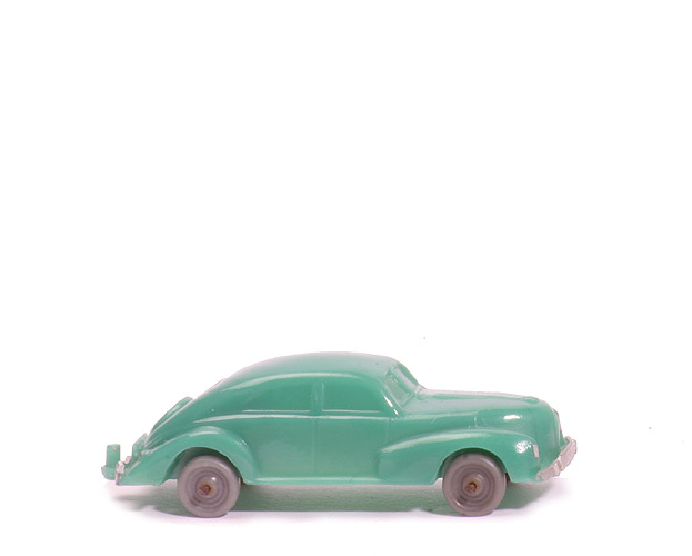 Achsen | Drahtachser | Typ | Haube gerundet ("spitz") | Farbe Karosserie | (hell-) grün | Frontscheibe | geteilt | Kühlergrill | ein senkrechter Steg | hintere Stoßstange | geteilt, integrierter Zughaken | Zughaken | Zughaken integriert | Bodenprägung | WM Germany | Bemalung Scheinwerfer | silbern | Bemalung Kennzeichen vorne | silbern | Bemalung Stoßstange vorne | silbern | Bemalung Rückleuchten | rot | Bemalung Kennzeichen hinten | ohne | Bemalung Stoßstange hinten | silbern | Räder Typ | Nabe gewölbt | Räder Farbe | staubgrau |