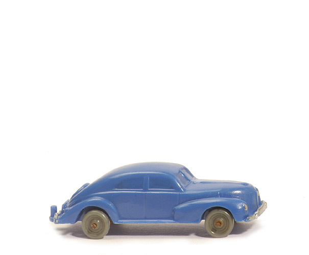 Achsen | Drahtachser | Typ | Haube gerundet ("spitz") | Farbe Karosserie | ultramarin | Frontscheibe | geteilt | Kühlergrill | ein senkrechter Steg | hintere Stoßstange | geteilt, integrierter Zughaken | Zughaken | Zughaken integriert | Bodenprägung | WM Germany | Bemalung Scheinwerfer | silbern | Bemalung Kennzeichen vorne | silbern | Bemalung Stoßstange vorne | silbern | Bemalung Rückleuchten | rot | Bemalung Kennzeichen hinten | ohne | Bemalung Stoßstange hinten | silbern | Räder Typ | Nabe gewölbt | Räder Farbe | staubgrau |