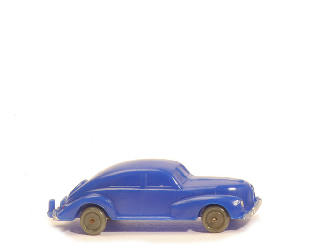 Achsen | Drahtachser | Typ | Haube gerundet ("spitz") | Farbe Karosserie | ultramarin | Frontscheibe | geteilt | Kühlergrill | ein senkrechter Steg | hintere Stoßstange | geteilt, integrierter Zughaken | Zughaken | Zughaken integriert | Bodenprägung | WM Germany | Bemalung Scheinwerfer | silbern | Bemalung Kennzeichen vorne | silbern | Bemalung Stoßstange vorne | silbern | Bemalung Rückleuchten | rot | Bemalung Kennzeichen hinten | ohne | Bemalung Stoßstange hinten | silbern | Räder Typ | Nabe gewölbt | Räder Farbe | staubgrau |