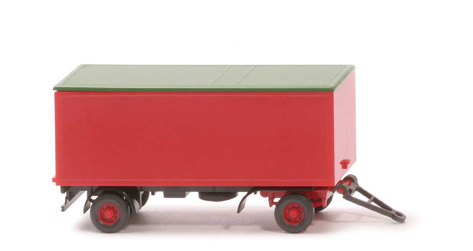 Aufbau Farbe | rot | Hecktüren Farbe | rot | Dach | ca. diamantgrün | Chassis Farbe | schwarz | Chassis Bodenprägung | WIKING, BERLIN-W | Unterfahrschutz | mit | Drehschemel | rot | Radlauf hinten | schwarz | Reserverad | unter Chassis, gesteckt | Räder | 11mm, 2-teilig | Felgen | eingesetzt, rot, 8-Loch |