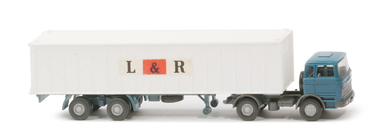 Zugmaschine azurblau, Container weiß - nicht im GK. |