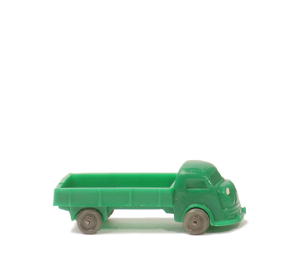 Räder | Drahtachser | Aufbau | grün | Bemalung Scheinwerfer | weiß | Bemalung Kennzeichen vorne | ohne | Bemalung Kennzeichen hinten | ohne | Herstellerkennzeichen | ohne | Farbe Räder | staubgrau, leicht transparent | Typ Räder | Nabe flach |