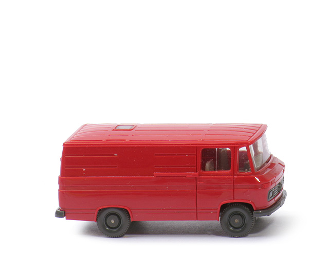 | Farbe Karosserie | rot | | Verglasung | klar | | Inneneinrichtung | ca. graubeige | | Lenkrad | mit | | Chassisfarbe | anthrazit | | Platte zur Achshalterung | anthrazit | | Bodenprägung | Wiking Germany 27 | | Beschriftung | ohne | | Bemalung | ohne | | Räder | anthrazit, 9 mm (groß) |