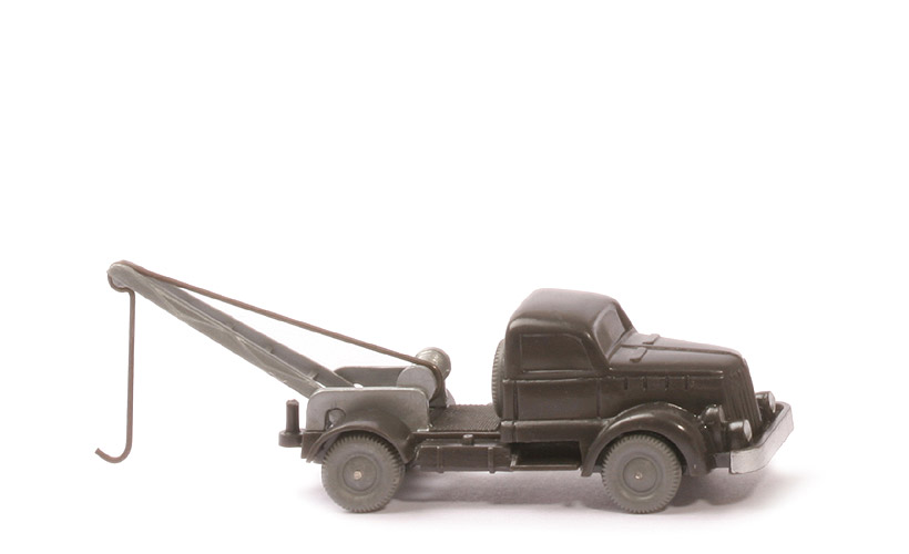 Achsen | Rollachser | Farbe Kabine | anthrazit | Farbe Chassis | anthrazit | Bemalung | Scheinwerfer, Stoßstange | Chassis | Version 1a | Achshalterungen | geschlossen | Bodenprägung | WM (ohne Kreis) | Reserverad | hinter Kabine | Kranaufbau | silbern | Kranausleger | silbern | Haken und Zugseil | einteilig Draht | Räder | 10 mm, mit Profil, staubgrau |