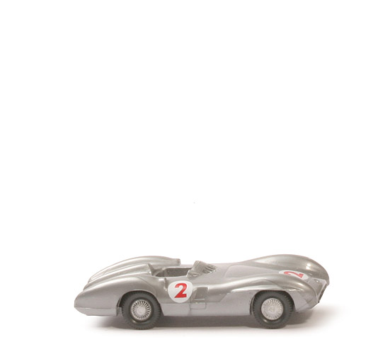 Farbe Karosserie | silbern | Grill | fein | Fahrer | ohne | Chassis Typ | neu | Chassis Farbe | silbern | Bodenprägung | neues WIKING-Logo, Mercedes Rennwagen, MiG | Bedruckung Haube | "2" rot auf weiß | Bedruckung Seiten | "2" rot auf weiß | Räder | 8 mm, Riffelkappe | Felgen | gesilbert |