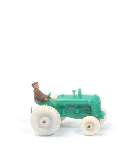 | Räder | Drahtachser | | Aufbau | grün | | Zughaken | Draht | | Bemalung Scheinwerfer | ohne | | Fahrer | Rücken gerade | | Bemalung Fahrer | Gesicht, Hände, Jacke braun | | Farbe Räder | weiß |