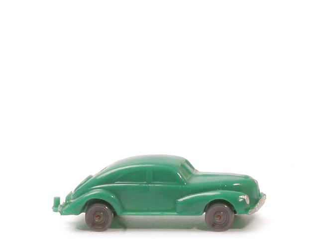 Achsen | Drahtachser | Typ | Haube gerundet ("spitz") | Farbe Karosserie | dunkelgrün | Frontscheibe | geteilt | Kühlergrill | ein senkrechter Steg | hintere Stoßstange | geteilt, integrierter Zughaken | Zughaken | Zughaken integriert | Bodenprägung | WM Germany | Bemalung Scheinwerfer | silbern | Bemalung Kennzeichen vorne | silbern | Bemalung Stoßstange vorne | silbern | Bemalung Rückleuchten | rot | Bemalung Kennzeichen hinten | ohne | Bemalung Stoßstange hinten | silbern | Räder Typ | Nabe gewölbt | Räder Farbe | staubgrau |